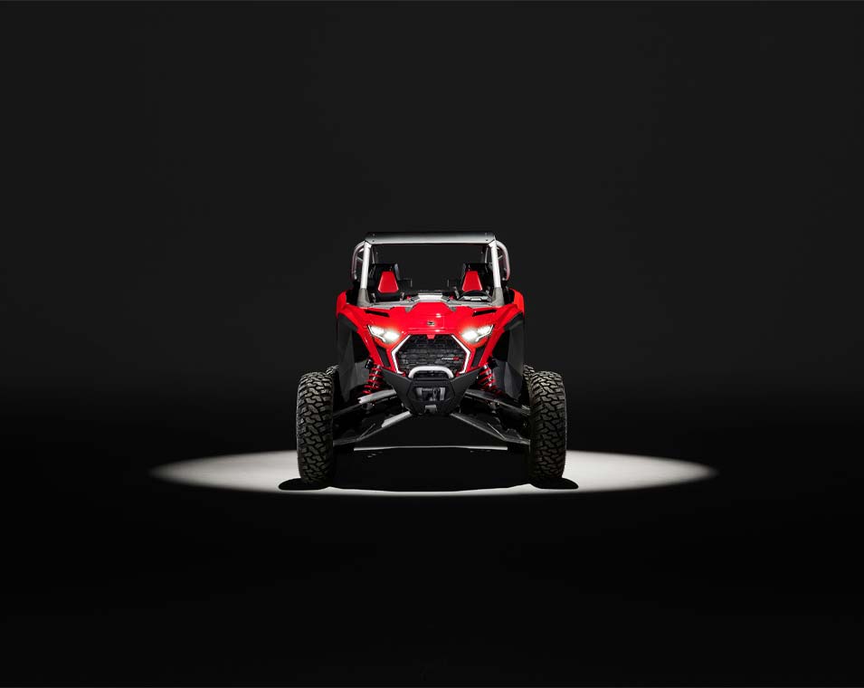 Show up and stand out: Das markante Design des RZR Pro R kombiniert Stil und Leistung, um jedes Abenteuer zu gewinnen.